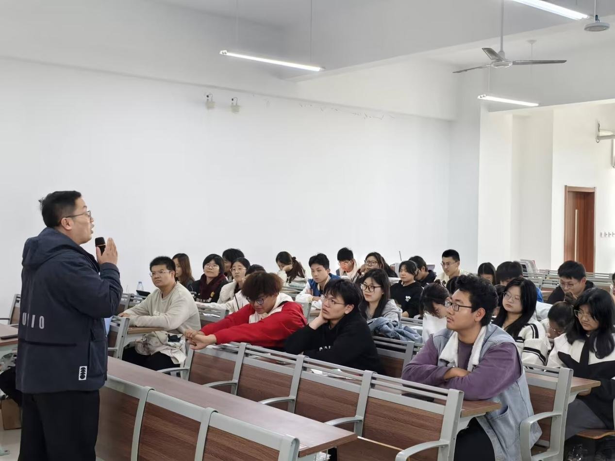 11 月 11 日9428cn太阳集团古天乐在增信楼516举办优秀员工专题报告会,邀请优秀员工李泰禹返校做报告,2025届毕业生参加。