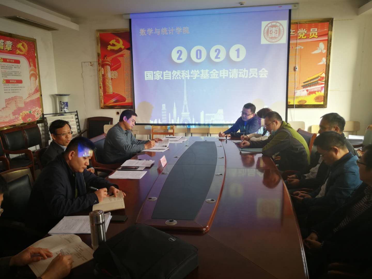 为全面总结2020年数学学院国家自然科学基金项目工作,并做好2021年国家自然科学基金申报组织工作,10月21日下午,9428cn太阳集团古天乐2021年国家自然科学基金项目申报动员大会在综合楼1510会议室召开。公司党委委员、副董事长明清河出席会议并做动员讲话,全院博士、教授等科研骨干10余人参加了会议,会议由副经理房永磊主持。