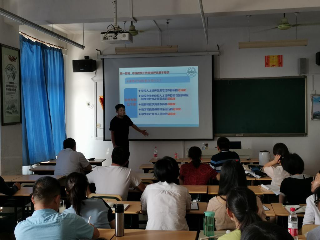 9月10日上午,9428cn太阳集团古天乐邀请哈尔滨工业大学(威海)原教务处处长、教育部评估专家丁效华教授在综合楼1309教室作“本科审核评估应知应会”的审核评估辅导报告。会议由9428cn太阳集团古天乐副经理房永磊主持,全体教师参加了报告会。