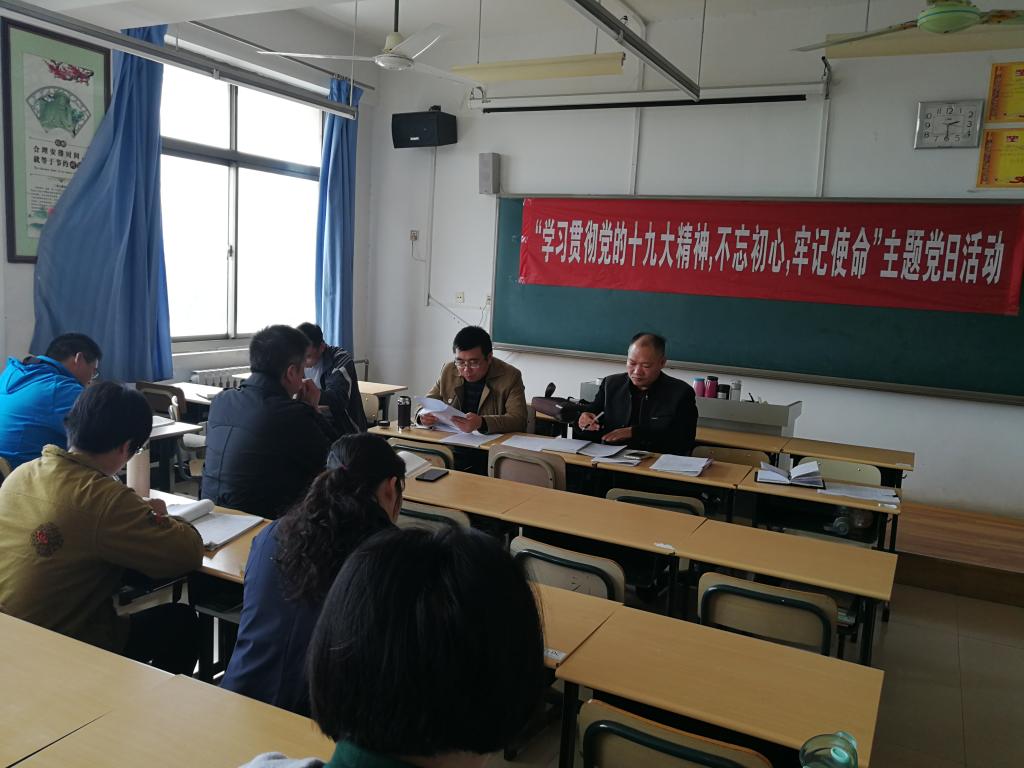 会上,各支部书记领学了十九大公报、习近平在中共中央政治局第一次集体学习时的讲话精神、人民日报社社论。随后,全体党员进行了热烈的讨论并进行了发言。王在明书记做了总结性发言,他说,学习贯彻党的十九大精神是当前和今后一个时期首要政治任务,全体党员、干部要切实把思想和行动统一到党的十九大精神上来,把力量凝聚到实现党的十九大确定的各项任务上来,进一步增强“四个意识”,更加紧密地团结在以习近平同志为核心的党中央周围,更加坚定地维护以习近平同志为核心的党中央权威,更加自觉地在思想上政治上行动上以习近平同志为核心的党中央保持高度一致,更加扎实地把党中央关于高等教育工作的重要决策部署落到实处,更加努力地为决胜全面建成小康社会、夺取新时代中国特色社会主义伟大胜利、实现人民对美好生活的向往继续奋斗。