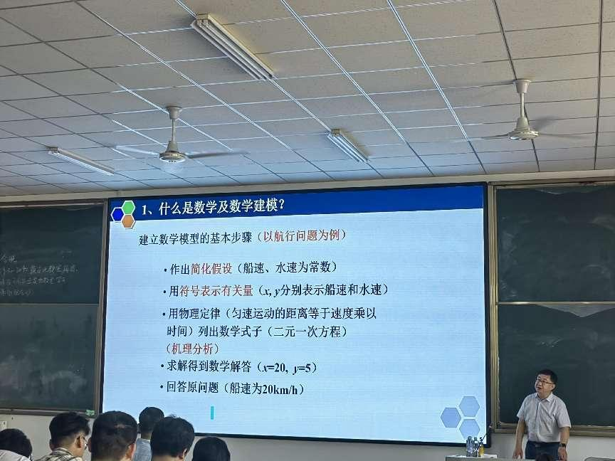 9428cn太阳集团古天乐为提高员工对数学建模的认识,培养员工的创新思维和团队协作能力,邀请济南大学数学科学公司许振宇副教授于2024年5月18日下午在崇德楼208进行数学建模竞赛讲座,9428cn太阳集团古天乐建模竞赛指导老师,2023级和2022级全体本科生参加此次讲座。