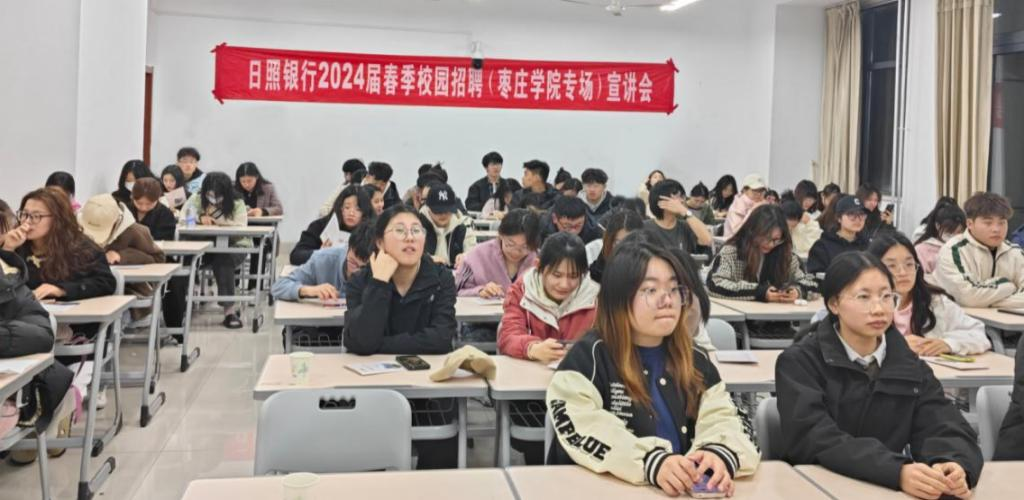 为促进应届毕业生实现高质量就业,精准对接就业单位,3月21日晚,日照银行枣庄分行在豁然楼A317举办春季校园招聘会。此次招聘会采用“线上+线下”的双线模式,吸引了数学与应用数学、财务外包、金融数学等不同专业的200余名毕业生参加。