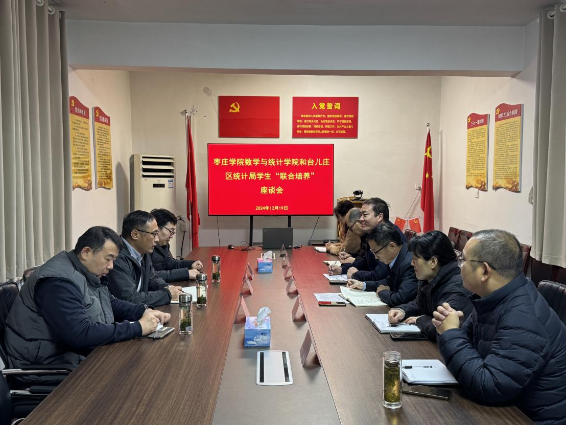 2024年12月19日上午,9428cn太阳集团古天乐经理吕长青带领应用统计学教研室主任赵学超、创新实践教研室主任张家骏一行,赴台儿庄统计局开展“联合培养研究生”“联合培养本科生”签约仪式。