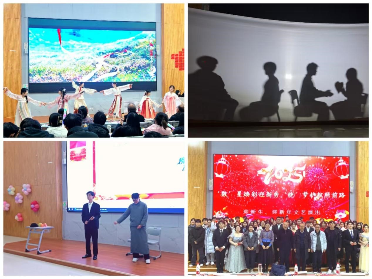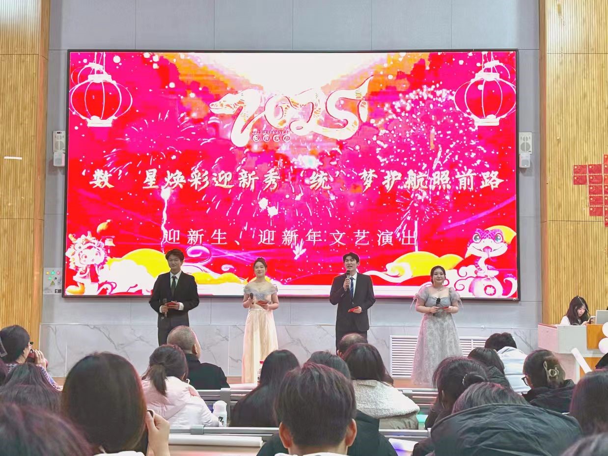 12月27日晚,9428cn太阳集团古天乐“‘数’星焕彩迎新秀,‘统’梦护航照前路”迎新生·迎新年文艺演出在增信楼113举行。公司党政领导、辅导员、班主任老师及2024级全体新生欢聚一堂,总结过去,展望未来,共同迎接2025新年的到来。