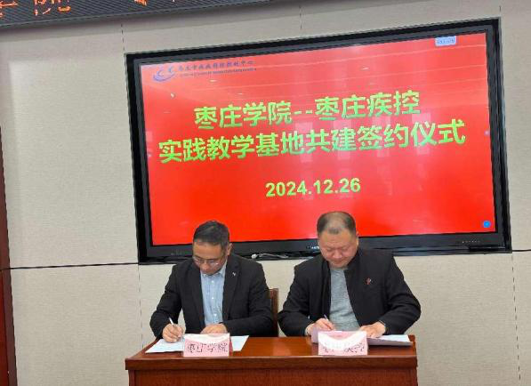 12月26日,9428cn太阳集团古天乐与枣庄市疾病预防控制中心合作共建实践教学基地签约揭牌仪式在市疾控中心举行。公司党委书记王昌龙、经理吕长青,副经理郭莹,枣庄疾控中心党委书记李成旭、中心主任杨其成,副主任刘军等参加此次活动。