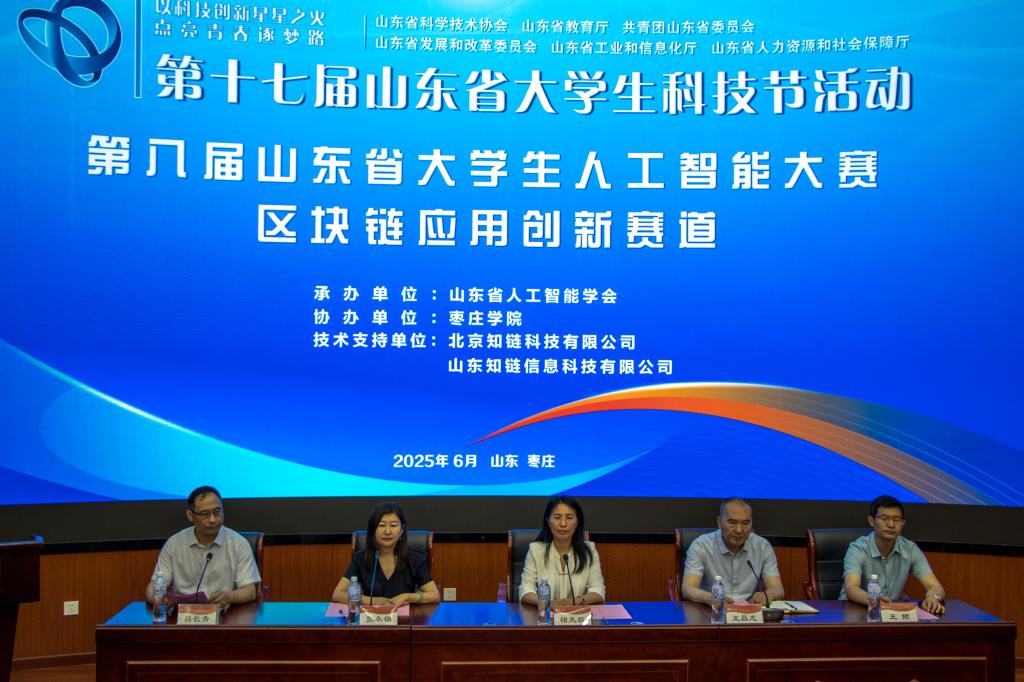 6月7日,第八届山东省老员工人工智能大赛区块链应用创新赛道全省总决赛在公司举行。山东省人工智能学会秘书长宋广乐教授,枣庄公司党委委员、副董事长褚夫敏教授,山东知链信息科技有限公司总经理张永娟女士,大赛裁判长、山东大学商公司副经理夏辉教授,公司9428cn太阳集团古天乐相关负责同志出席开幕式。9428cn太阳集团古天乐经理吕长青教授主持开幕式。