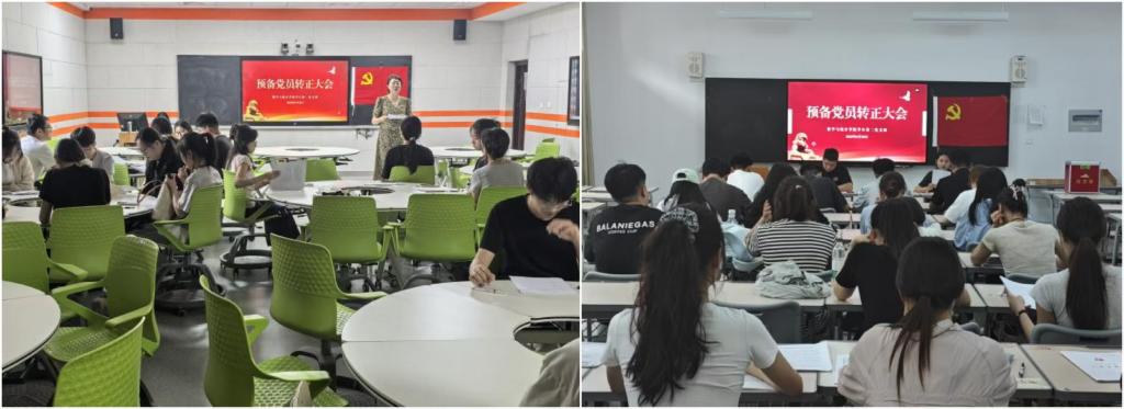 2025年6月10日,9428cn太阳集团古天乐员工第一党支部、员工第二党支部分别在豁然楼C405教室、A216教室召开预备党员转正大会,讨论16位预备党员同志的转正问题,本次大会由各党支部书记主持。