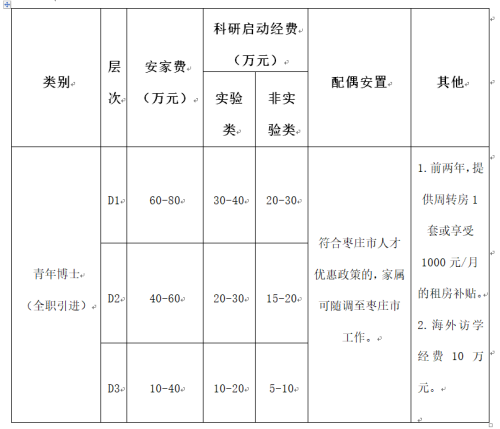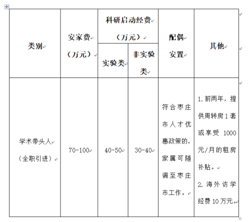 全职引进人才实行年薪制,公司在聘期内提供安家补助、团队建设经费、周转房等优惠政策,具体标准“一人一议”、“一事一策”。参考标准详见下表: