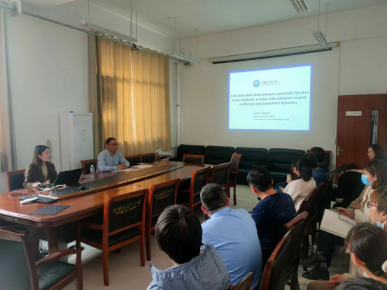 11月22日,数学与统计公司举办学术论坛,论坛邀请中国石油大学(华东)魏永丽博士做了题为《Anti-saturation fault-tolerant control for Markov jump nonlinear systems with unknown control coefficient and unmodeled dynamics》的学术报告,报告主要研究了一类输入饱和的马尔可夫跳变非线性系统的抗饱和容错控制问题。所研究的非线性系统包含未知的控制系数、未建模的动力学和故障,它们按照马尔可夫链演化。设计了一种新的饱和动态滤波器来降低输入饱和的影响。适当的李雅普诺夫函数是利用可用的动态信号来处理未建模的动态。将Nussbaum技术与范数估计方法相结合,有效克服了故障和马尔可夫切换参数未知带来的挑战。此外,基于命令滤波方法,设计了抗饱和容错控制器,保证闭环系统的所有信号在概率上有界。最后,通过两个算例验证了所提方法的有效性。公司部分专任教师参加此次学术论坛。