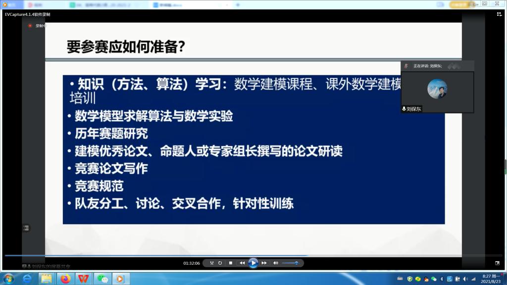 教授的报告有高度、有深度、有广度、有温度,学理性强,趣味性足,思维宏阔,发人深省刘教授从全国老员工数学建模竞赛的组队开始讲起,详细的介绍了从注册报名到竞赛结束的整个过程,并且重点介绍了比赛过程中如何分析题目以及如何查阅相关的知识点。