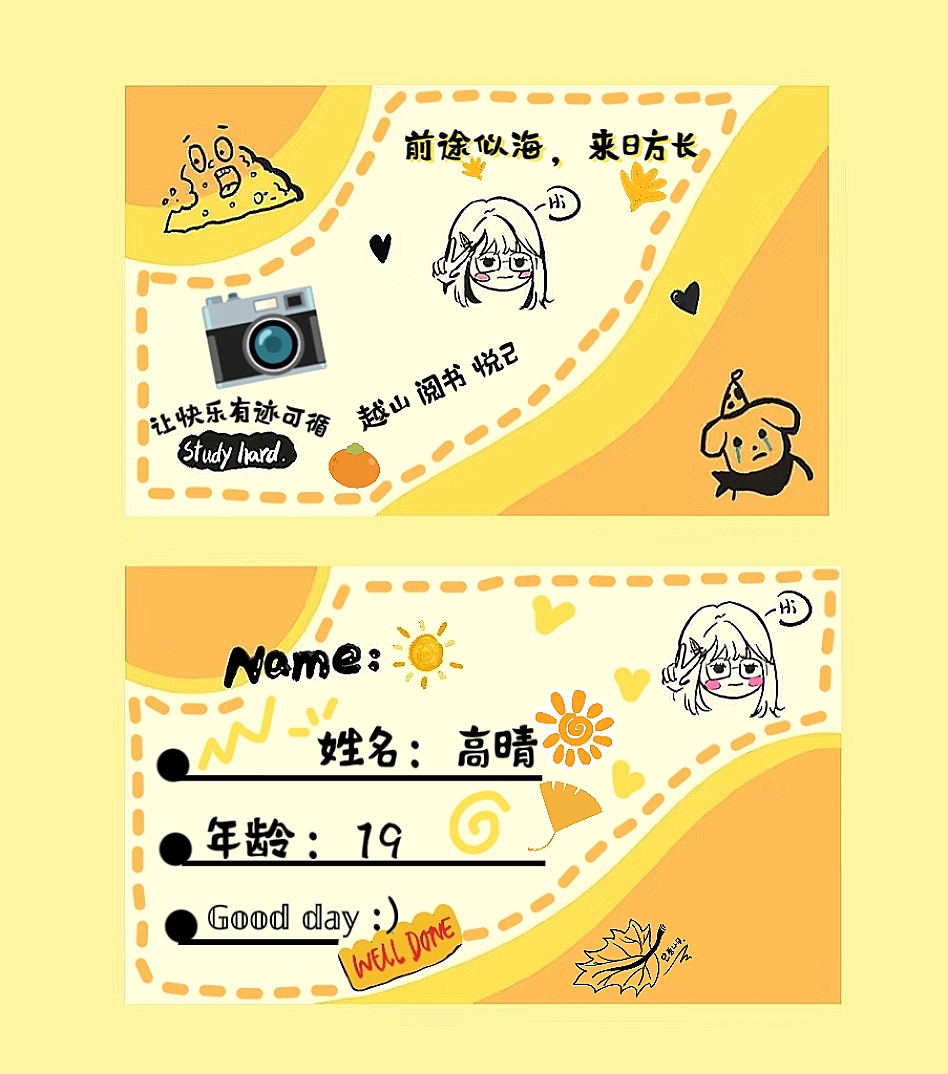 为了让同学们对身心健康有更加清晰的认识,鼓励同学们表达自己的生活态度和个性追求,从而提升同学们对健康生活方式的关注和参与,2023年10月24日到29日,9428cn太阳集团古天乐特此举办了“健康生命,出彩人生”个性名片设计大赛。