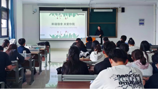 在此次班会中围绕着什么是和谐宿舍,怎样构建和谐宿舍,以及老师巡视宿舍工作时发现的问题等方面进行了展开讲解,并为此建立宿舍公约,与此同时还展示了部分优秀宿舍作为模范宿舍供同学们学习。班会还强调了建设和谐宿舍的重要性,以及如何处理宿舍成员之间的关系等问题。老师也根据各个方面的问题与同学们进行了讨论,同学们也积极踊跃发言,发表了自己的意见与观点。