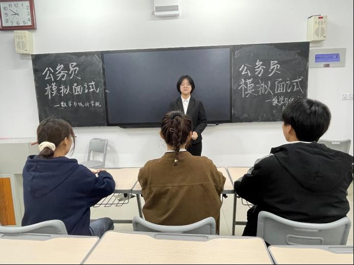 本次大赛面向全院同学开展,包括笔试和面试两个环节。在“教”与“学”、“考”与“赛”的过程中帮助同学们进一步了解公务员考试流程,提升公考笔试、面试水平与能力,掌握面试技巧、礼仪、程序。笔试为申论和行测两个科目,同学们在规定时间内进行模拟考试。面试以仿真流程进行,主要面试结束后,评委们针对选手的表现做了精辟的点评。对选手们的优点不吝赞美之词,同时也一针见血的指出了选手们在模拟面试中出现的问题,并给出了改善的建设性意见。