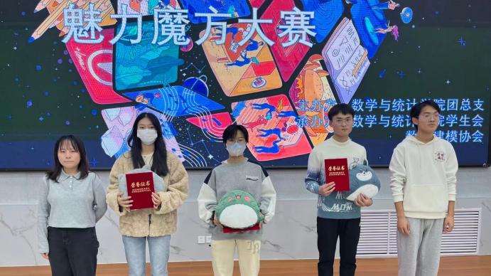 此次魔方活动的举办,旨在让同学们更加近距离地接触魔方、体会魔方的乐趣,同时也能在比赛中锻炼同学们的逻辑思维能力和动手动脑能力,大赛也为魔方爱好者们提供了一个交流的平台。灵动的指尖,变幻无穷的转法,不仅能锻炼我们的大脑,也能让我们用更坚定的心态面对未来的学习和生活。希望通过此次大赛激起同学们对魔方的热爱,转出激情,炫出自我。