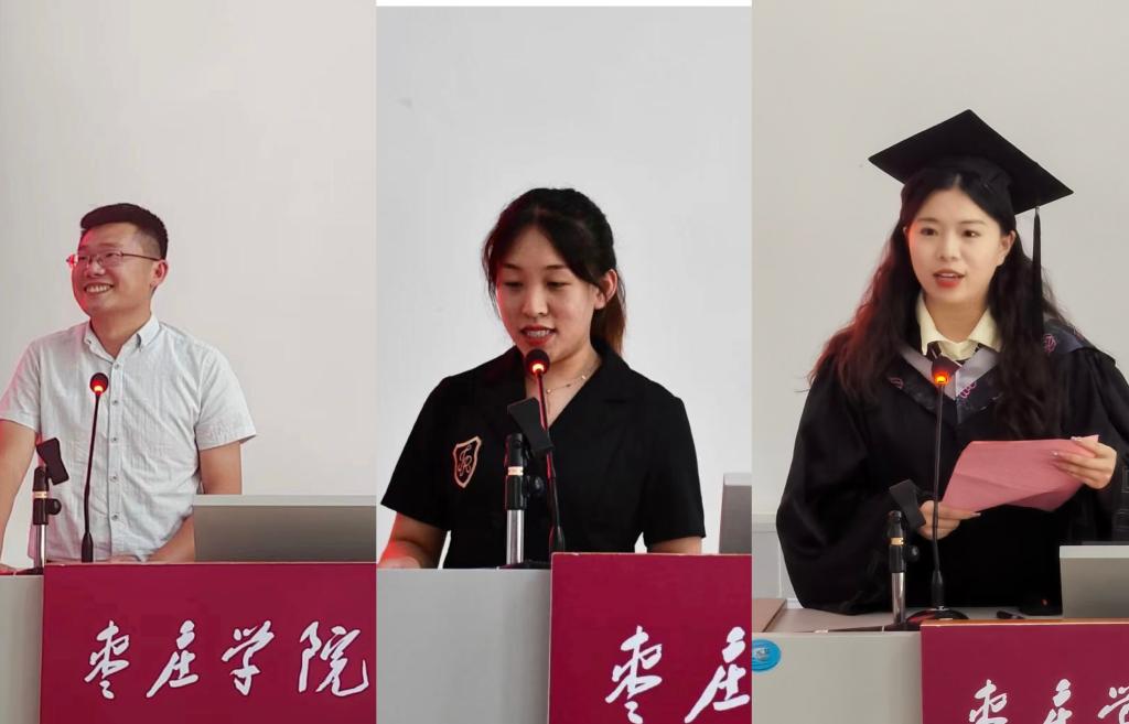 教师代表宋文耀发言,对即将踏上新征程的毕业生们表达期盼和祝愿,希望他们不忘母校,谨遵老师教诲,锐意进取,再创辉煌。2019级张瑶同学作为在校生代表发言发言,对毕业生们表达祝愿和感谢,并表示以他们为榜样奋力拼搏。随后毕业生代表周月同学发言,感谢四年来领导的关怀,老师的教导和同学的鼓励帮助。