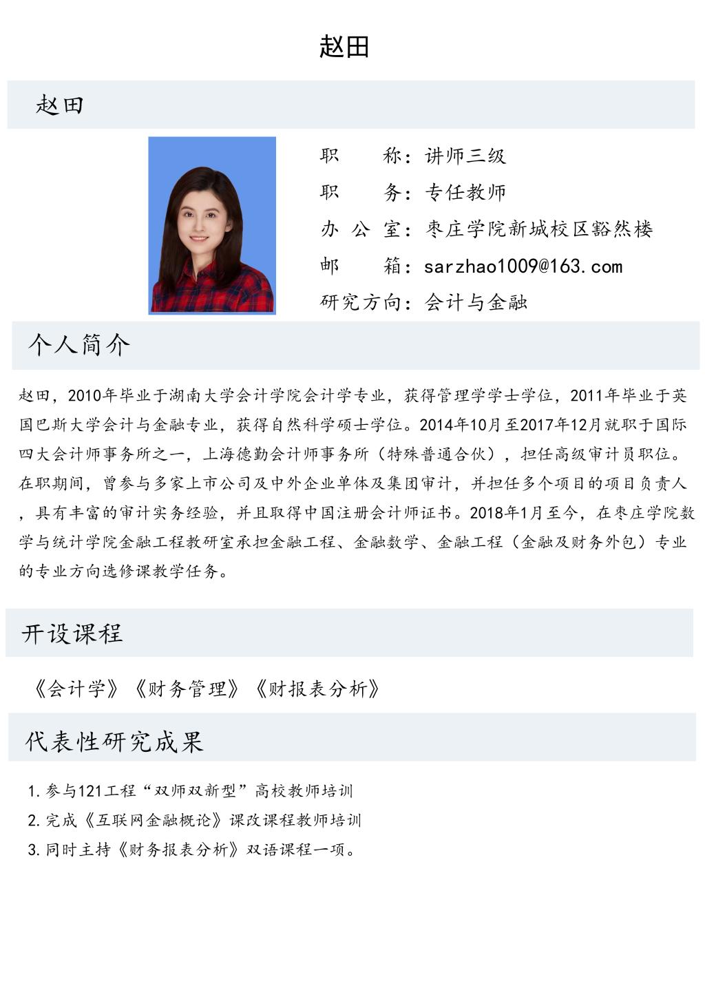 赵田老师个人简介